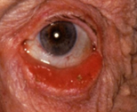 Symptoms: acute onset, tearing (from nasolacrimal duct obstruction), redness, purulent discharge, tender swollen lacrimal sac. An infection within the "tear duct" causes a painful swelling in the inner corner of the eyelids.