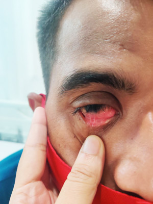 Penetrating trauma: The globe integrity is disrupted by a full-thickness entry wound and may possibly be associated with prolapse of the internal contents of the eye.